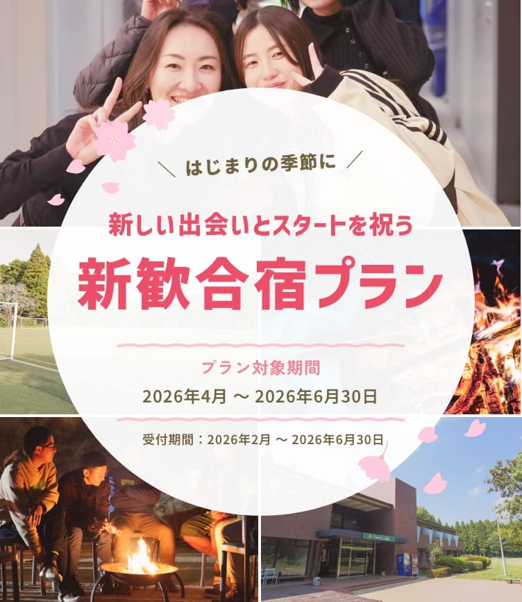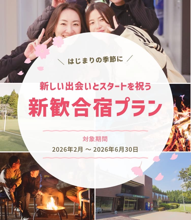 本プランでは、新メンバーとの時間をしっかり楽しめるよう、フォレストビレッジならではの特典をご用意しました。はじまりの季節にふさわしい、特別な時間を。新歓合宿が、これから続く一年の最高のスタートになるようお手伝いします。